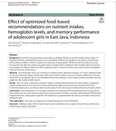Efect of optimized food-based recommendations on nutrient intakes, hemoglobin levels, and memory performance of adolescent girls in East Java, Indonesia