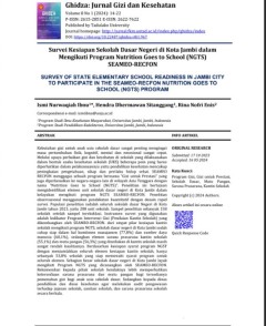 Survei Kesiapan Sekolah Dasar Negeri di Kota Jambi dalam Mengikuti Program Nutrition Goes to School (NGTS) SEAMEO-RECFON = SURVEY OF STATE ELEMENTARY SCHOOL READINESS IN JAMBI CITY TO PARTICIPATE IN THE SEAMEO-RECFON NUTRITION GOES TO SCHOOL (NGTS) PROGRAM